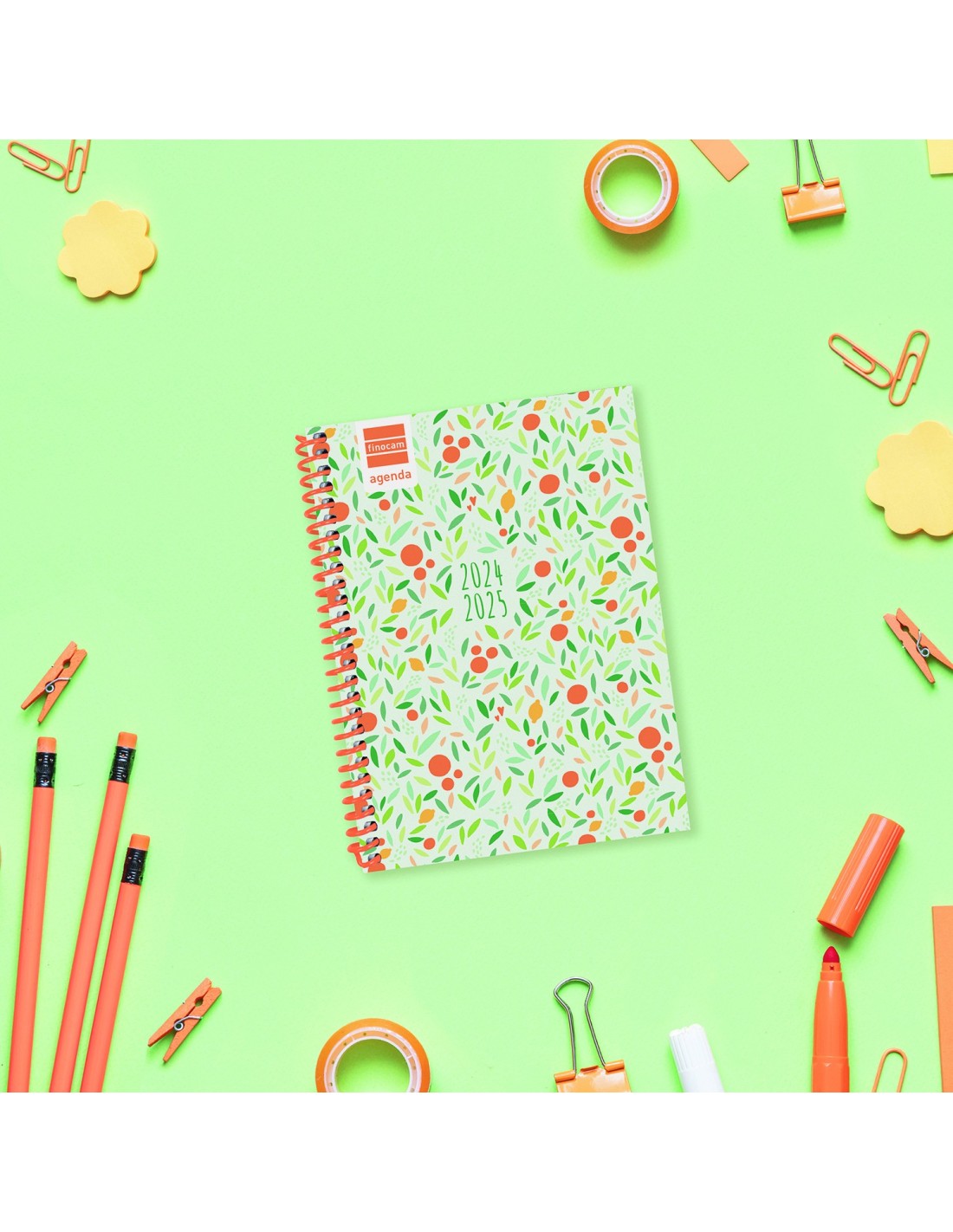 Agenda Escolar Curso 2024-2025 8º-120x164 mm Semana Vista Horizontal Diva Finocam Fruits Español. Agenda para estudiantes de secundaria orientada a la organización del curso lectivo. Espiral de plástico y tapas de cartón forrado. Agenda con información de interés en la anualidad y otros contenidos extra útiles y prácticos. Las esquinas son microperforadas para localizar rápidamente el día/semana en curso. Formato pequeño y práctico, fácil de transportar. Duración: Septiembre 2024 - Junio 2025 (curso lectivo) + Julio y Agosto resumidos. Interior: Semana Vista Horizontal. Con indicación en la anualidad de los festivos de España.La anualidad de la agenda contiene: onomástica, festivos nacionales, cambios de estación, días mundiales e internacionales de interés y días señalados. La agenda dispone también de otros contenidos extra: datos personales, calendario del curso, horarios (3 trimestres), libros/películas/series, mapas, seguimiento de exámenes y trabajos, inglés (verbos irregulares, adverbios, preposiciones, "phrasal verbs" y "false friends"), matemáticas (geometría, áreas visuales y volúmenes), tabla periódica, ausencias y retrasos, solicitud de entrevistas, contactos y hoja para anotaciones y dedicatorias. Agenda en español con anualidad bilingüe: español e inglés. Formato: 8º - 120x164. Tapas de cartón forrado con peliculado mate antirrayaduras. Espiral simple de plàstico. Papel. 70 g/m². Papel FSC® ecológico libre de cloro elemental fabricado bajo los certificados de calidad ISO9001:2015 y medio ambiente ISO14001:2015, cumpliendo así la normativa ISO9706 sobre la permanencia del papel. El Forest Stewardship Council® (FSC®) es una organización no gubernamental, independiente, sin ánimo de lucro, establecida para promover una gestión forestal ambientalmente responsable, socialmente beneficiosa y económicamente viable en los bosques de todo el mundo.
