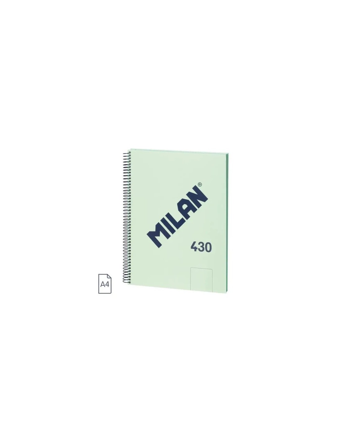 Cuaderno A4 con espiral metálica y tapa dura. 80 hojas de papel en blanco. Papel de 95 gr/m² de alta calidad, microperforado y con 4 taladros. Iniciador de corte para facilitar la separación de cada hoja. Cubierta de cartón rígido y logotipo MILAN brillante en relieve. Espiral flexible con cierre de seguridad que evita enganches con la ropa o rayaduras en muebles. Colección 430 since 1918, inspirada en los colores y diseño originales de las gomas de borrar MILAN, fabricadas en España desde 1918. Color verde.