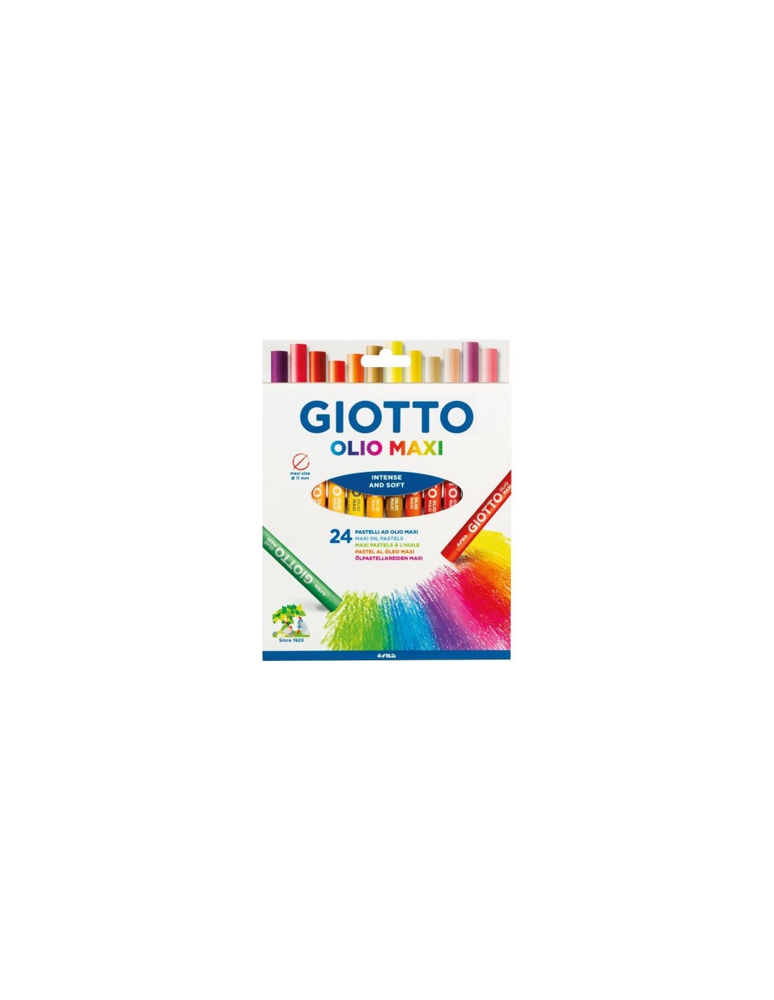 Estuche con asa Con 24 piezas. Colores ricos y opacos que son fáciles de aplicar. Pastel d.11x70 mm. Línea Giotto. Colores variados.