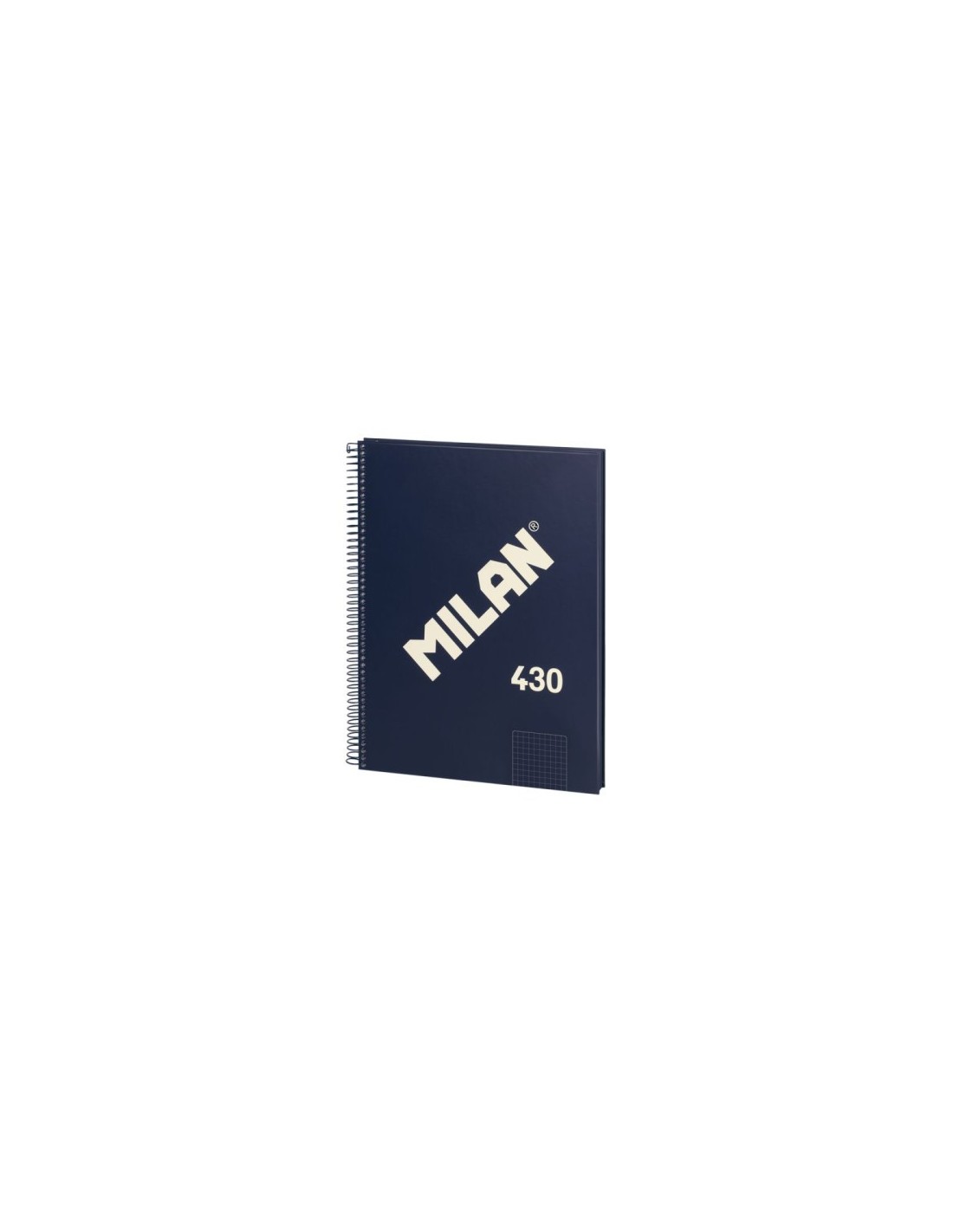 Cuaderno A4 con espiral metálica y tapa dura. 80 hojas de papel cuadriculado (5 x 5 mm). Papel de 95 gr/m² de alta calidad, microperforado y con 4 taladros. Iniciador de corte para facilitar la separación de cada hoja. Cubierta de cartón rígido y logotipo MILAN brillante en relieve. Espiral flexible con cierre de seguridad que evita enganches con la ropa o rayaduras en muebles. Color azul marino. Colección 430 since 1918, inspirada en los colores y diseño originales de las gomas de borrar MILAN, fabricadas en España desde 1918.