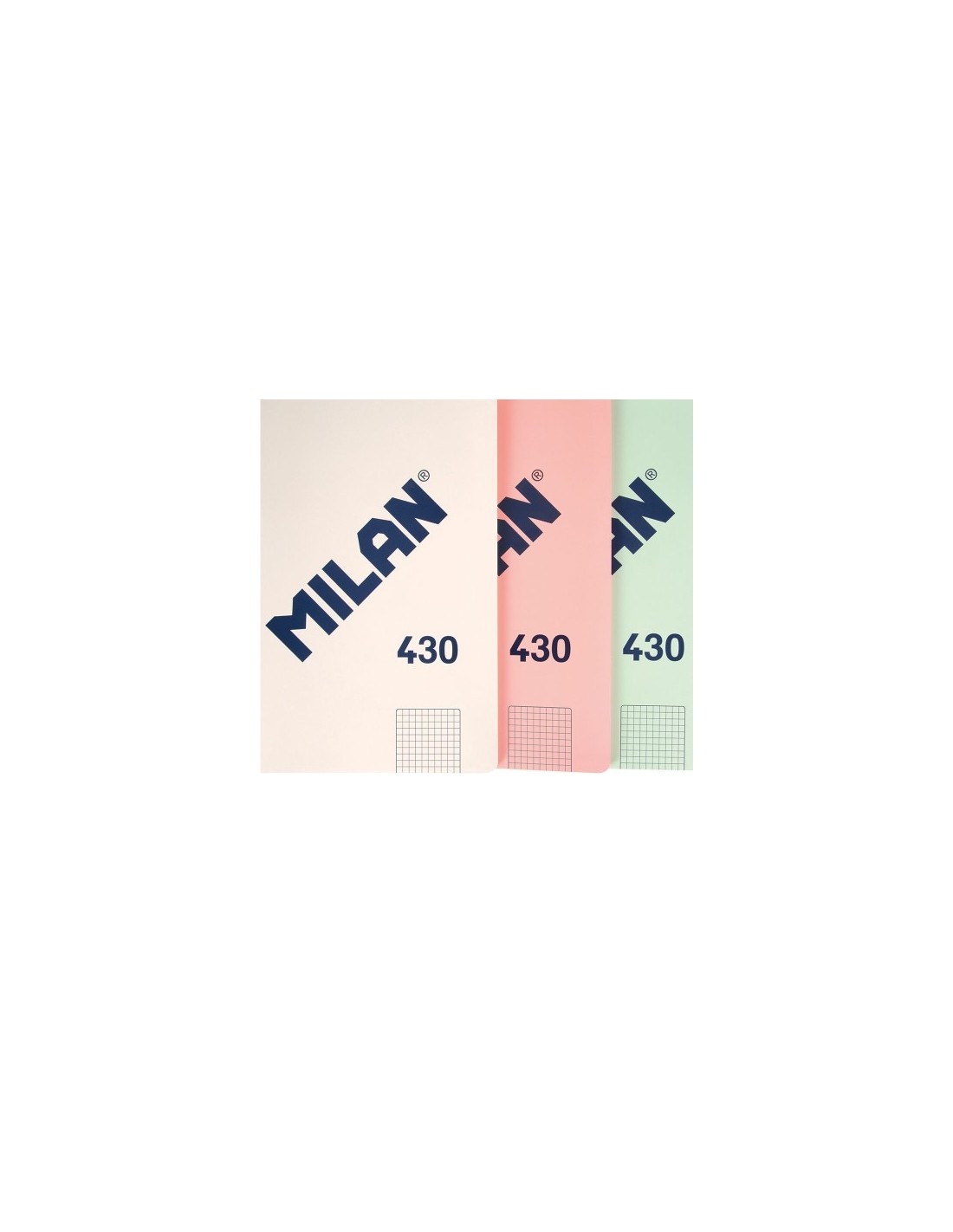 Libreta A4 encolada (sin grapas) y tapa flexible. 48 hojas de papel cuadriculado (5 x 5 mm). Papel de 95 gr/m² de alta calidad, microperforado. Cubierta de cartón flexible y logotipo MILAN brillante en relieve. Color verde. Colección 430 since 1918, inspirada en los colores y diseño originales de las gomas de borrar MILAN, fabricadas en España desde 1918.