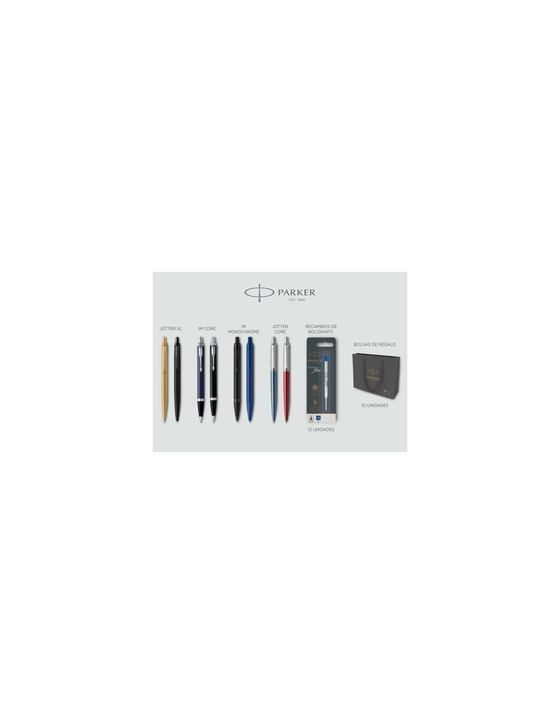 LOTE ESCRITURA PARKER 8 PIEZAS (6+2 DE REGALO) 12 RECAMBIOS + 10 BOLSAS REGALO PARKER 2197098
