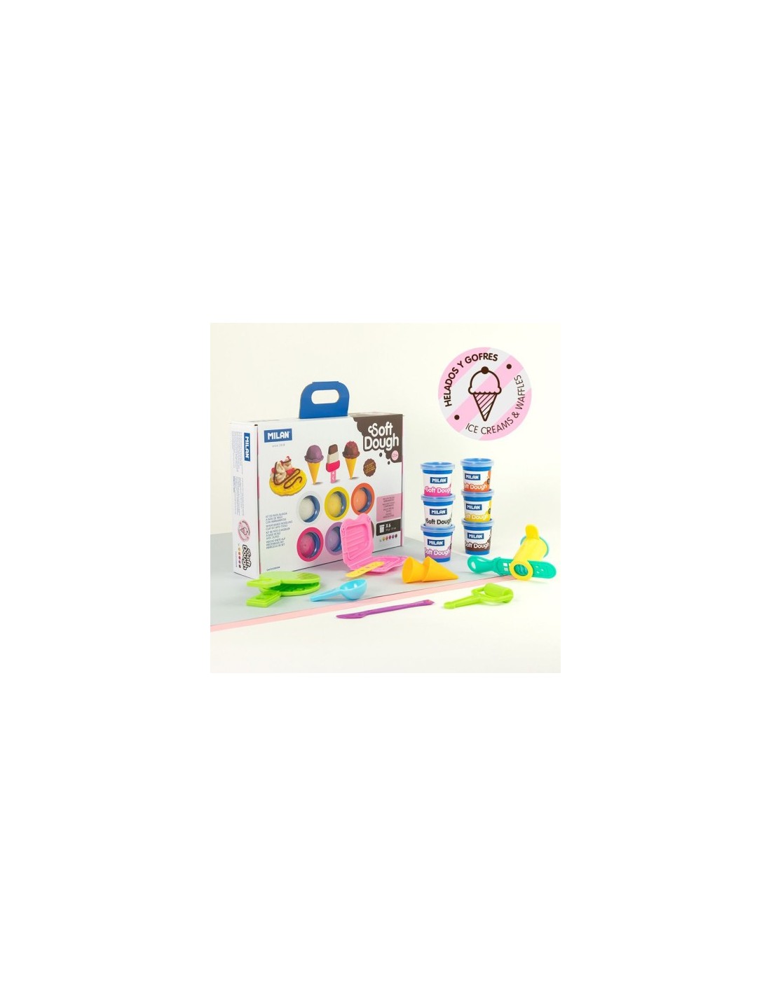 MALETÍN 6 BOTES PASTA BLANDA SOFT DOUGH DE 59GR + HERRAMIENTAS "HELADOS Y GOFRES" MILAN 913306ICW