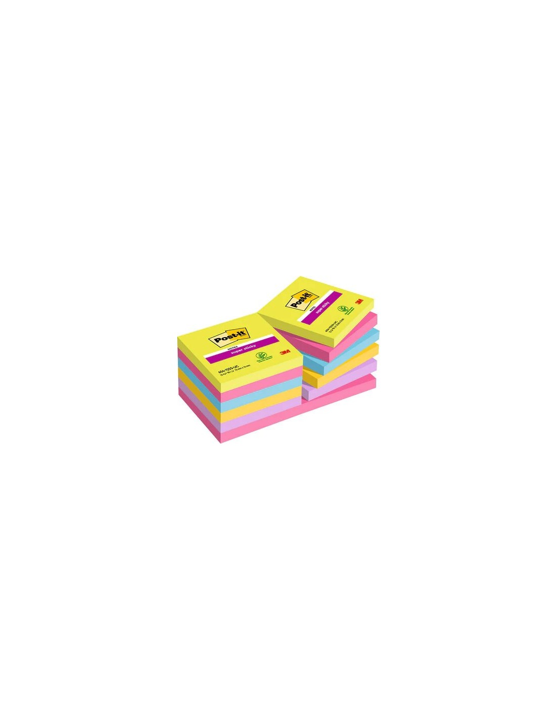 PACK 12 BLOCS 90 HOJAS NOTAS ADHESIVAS 76X76MM SUPER STICKY COLORES SURTIDOS ULTRA 654-12SSUC POST-IT 7100290156