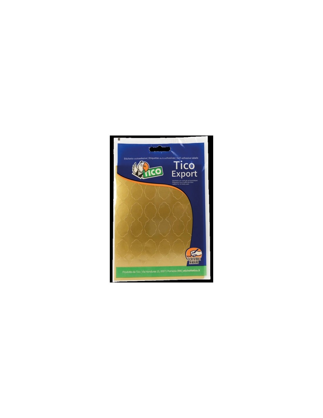 PAQUETE 10 HOJAS ETIQUETAS SATINADAS ORO 48X18 MM TICO E-GL-4818