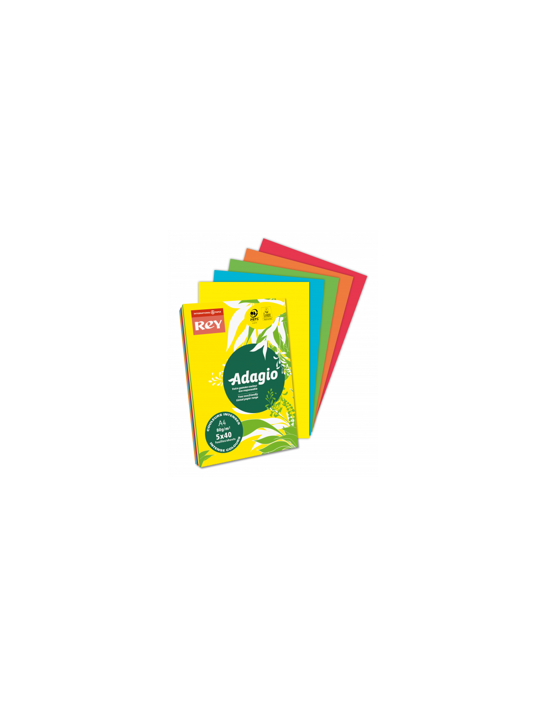 Rey Adagio A4 80 g/m² Yellow 500 sheets. Color del producto: Amarillo, Peso de media: 80 g/m². Hojas de medios por paquete: 500 hojas